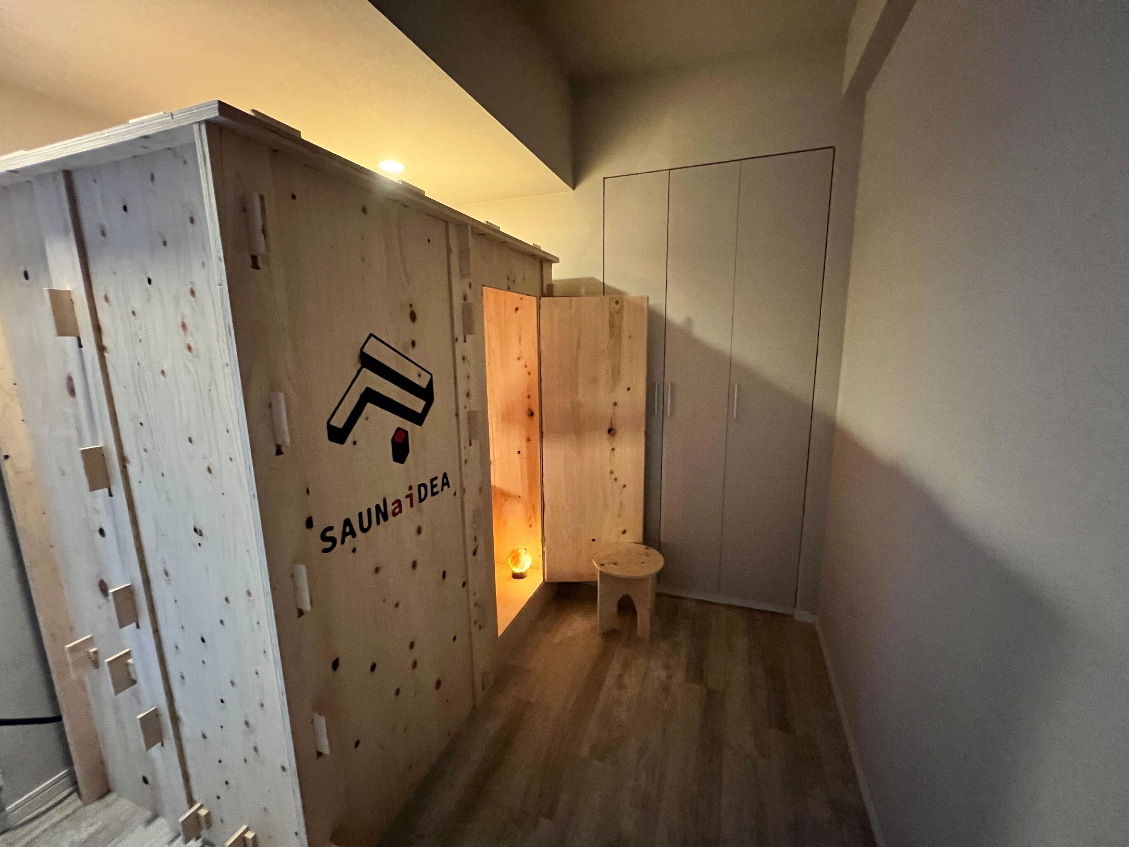 マンションの部屋やバルコニー、庭の一角など、好きな場所に設置ができるサウナ。