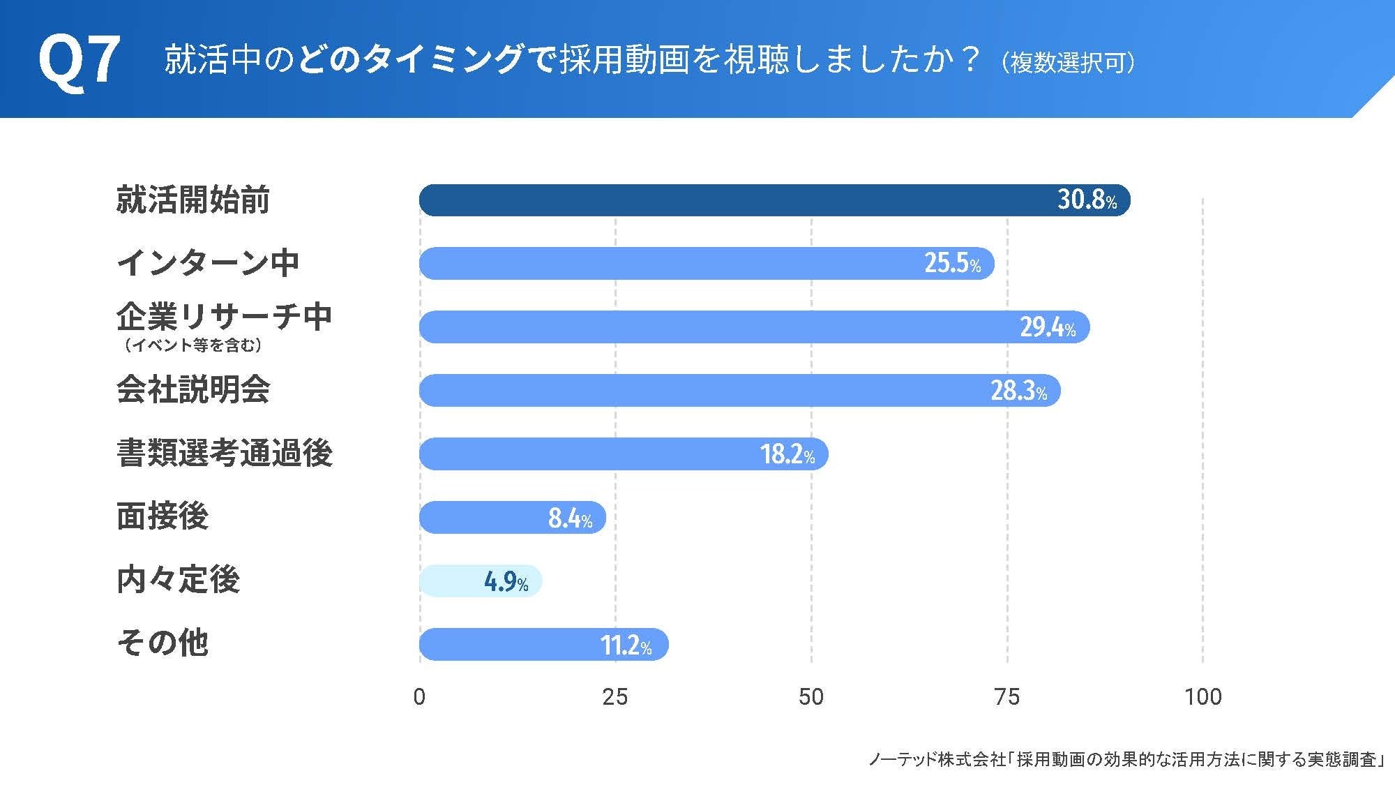 30.8%が就活開始前に採用動画を視聴!企業を知るきっかけに!?