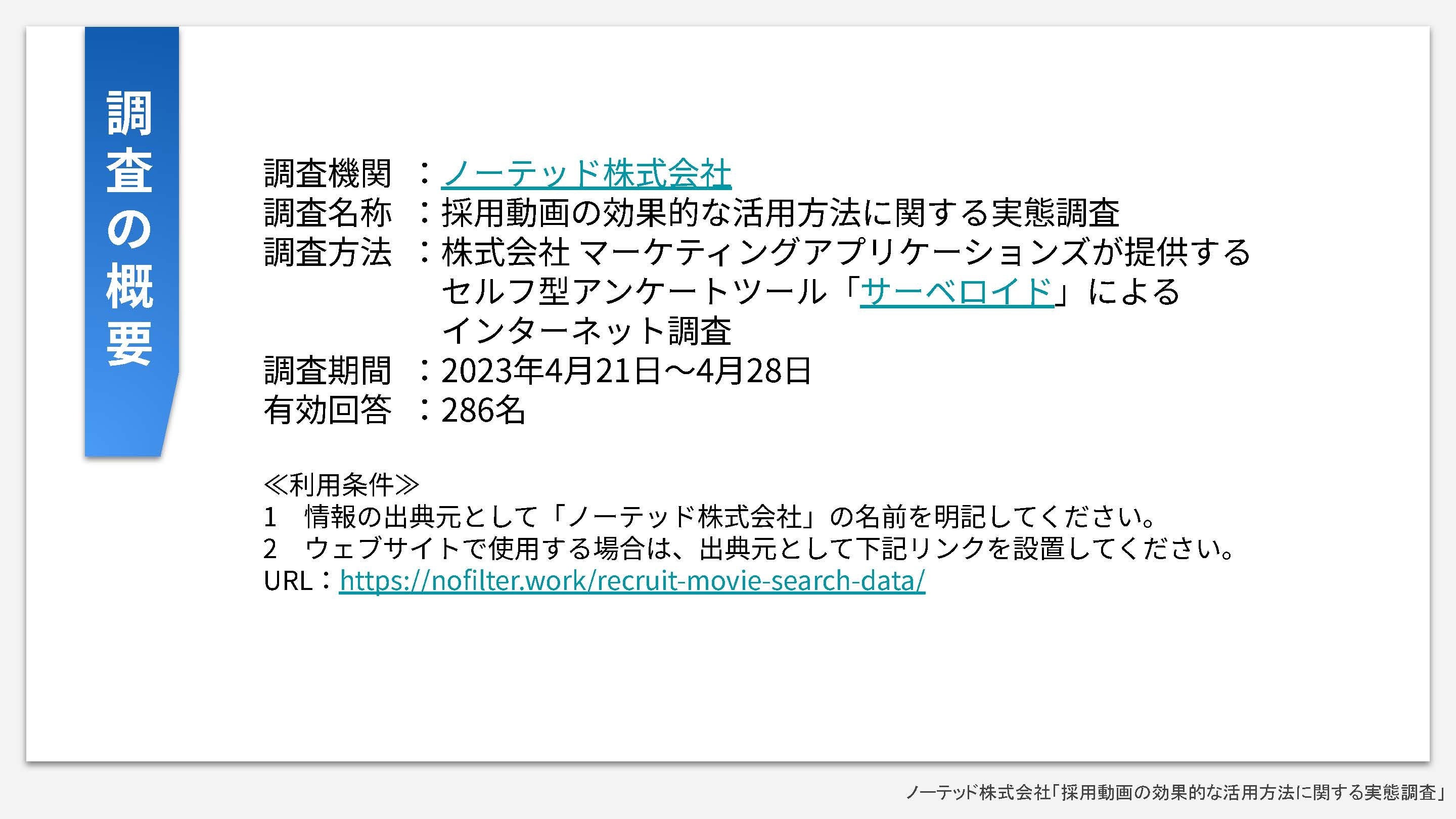 「23・24卒生対象 採用動画の効果的な活用方法に関する実態調査」2023年4月21日実施 ノーテッド株式会社