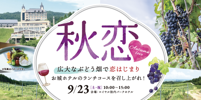2023/9/23(土)新発田市・胎内市・聖籠町定住自立圏婚活支援事業:秋恋 広大なぶどう畑で恋はじまり【ランチコース付き!】 を開催します