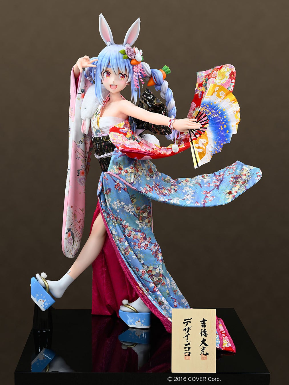 等身大兎田ぺこらのデータをそのままスケールダウンするのではなく、3Dモデル、衣装の作りを見直し、フィギュアのスケール感に合わせて全身のプロポーションや造形、着付けに至るまで徹底的にブラッシュアップを重ねています。