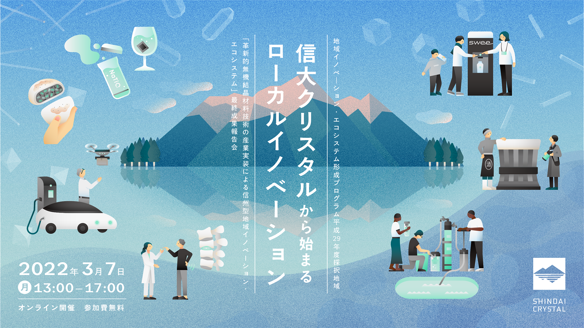 【3/7(月) Web開催】革新的無機結晶材料技術の産業実装による信州型地域イノベーション・エコシステム最終成果報告会「信大クリスタルから始まるローカルイノベーション」のご案内