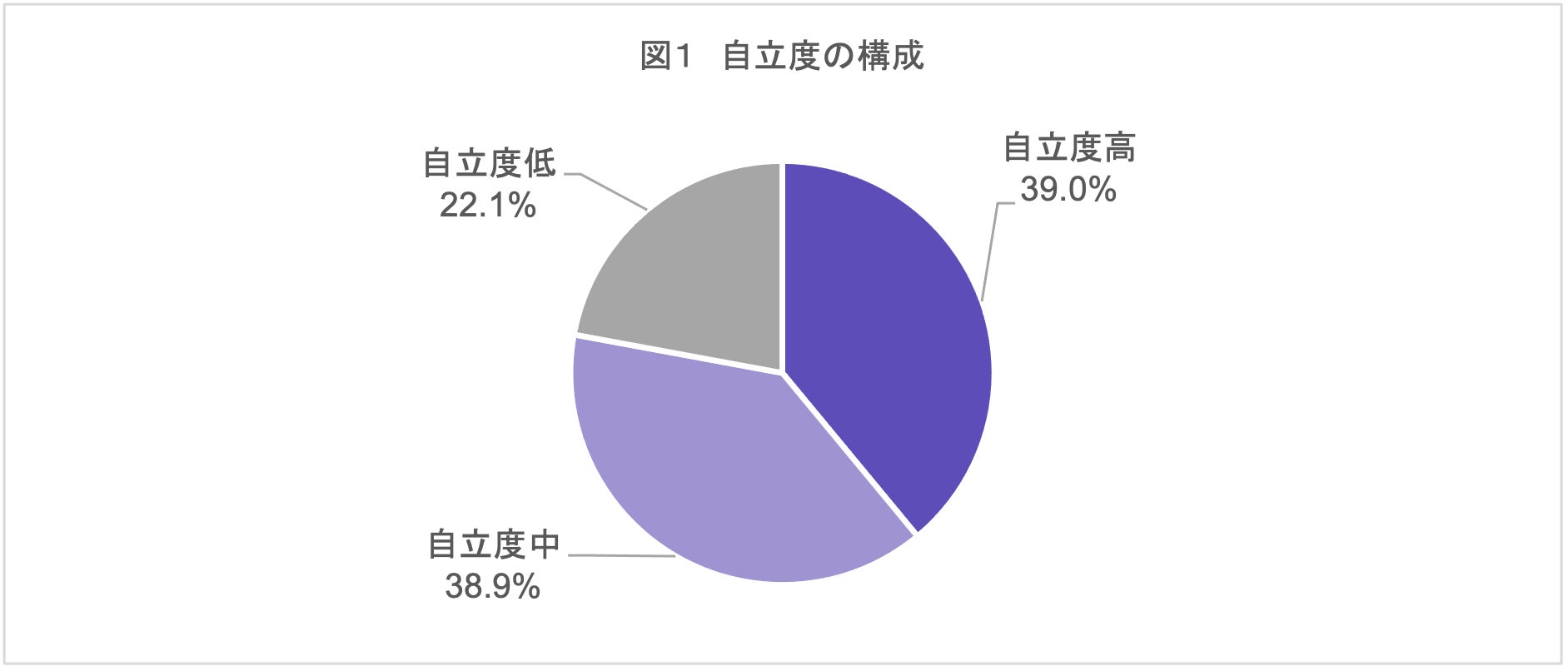 自立度の構成を見ると、自立シニア(自立度高)は39.0%、低自立シニア(自立度低)は22.1%でした。