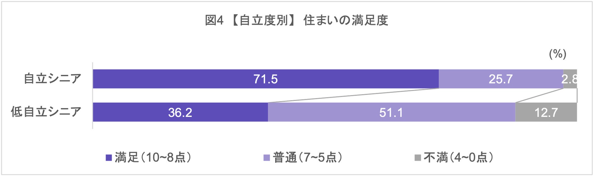 自立シニアは住まいへの満足度が高いことがわかりました。