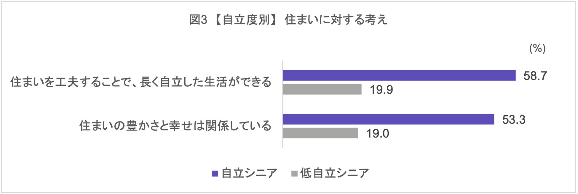 3. 自立シニアは住まいの工夫と自立、住まいの豊かさと幸せのつながりを認識している