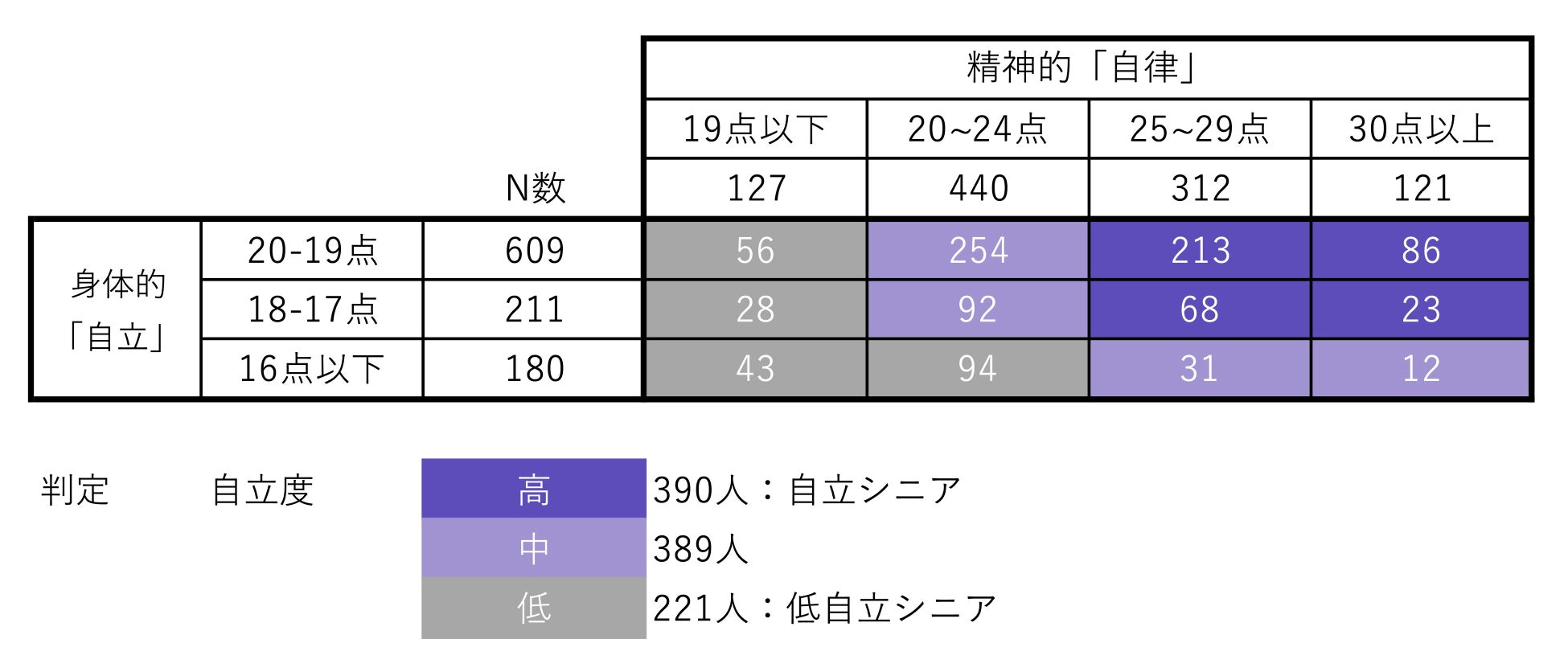 (1)(2)の結果を下表の通り掛け合わせをして最終的な「自立度」を設定した。