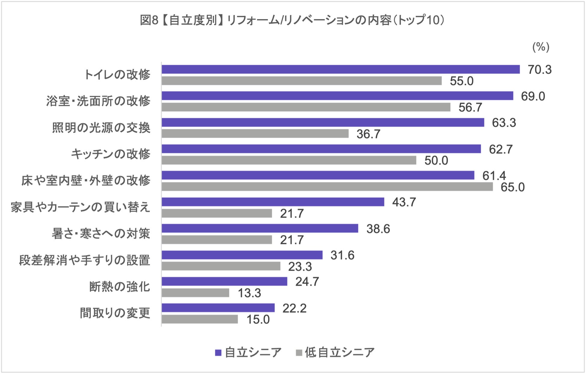8. 自立シニアは水回りや温熱環境のリフォーム/リノベーションに積極的