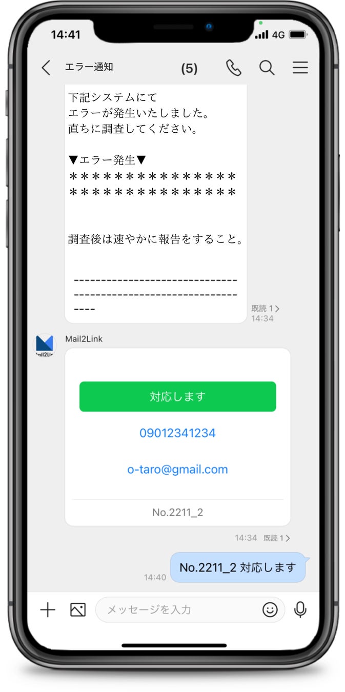 トークグループに転送することで、複数人とすぐに情報を共有できるのでメールの見落としや対応漏れを防ぐことができます。