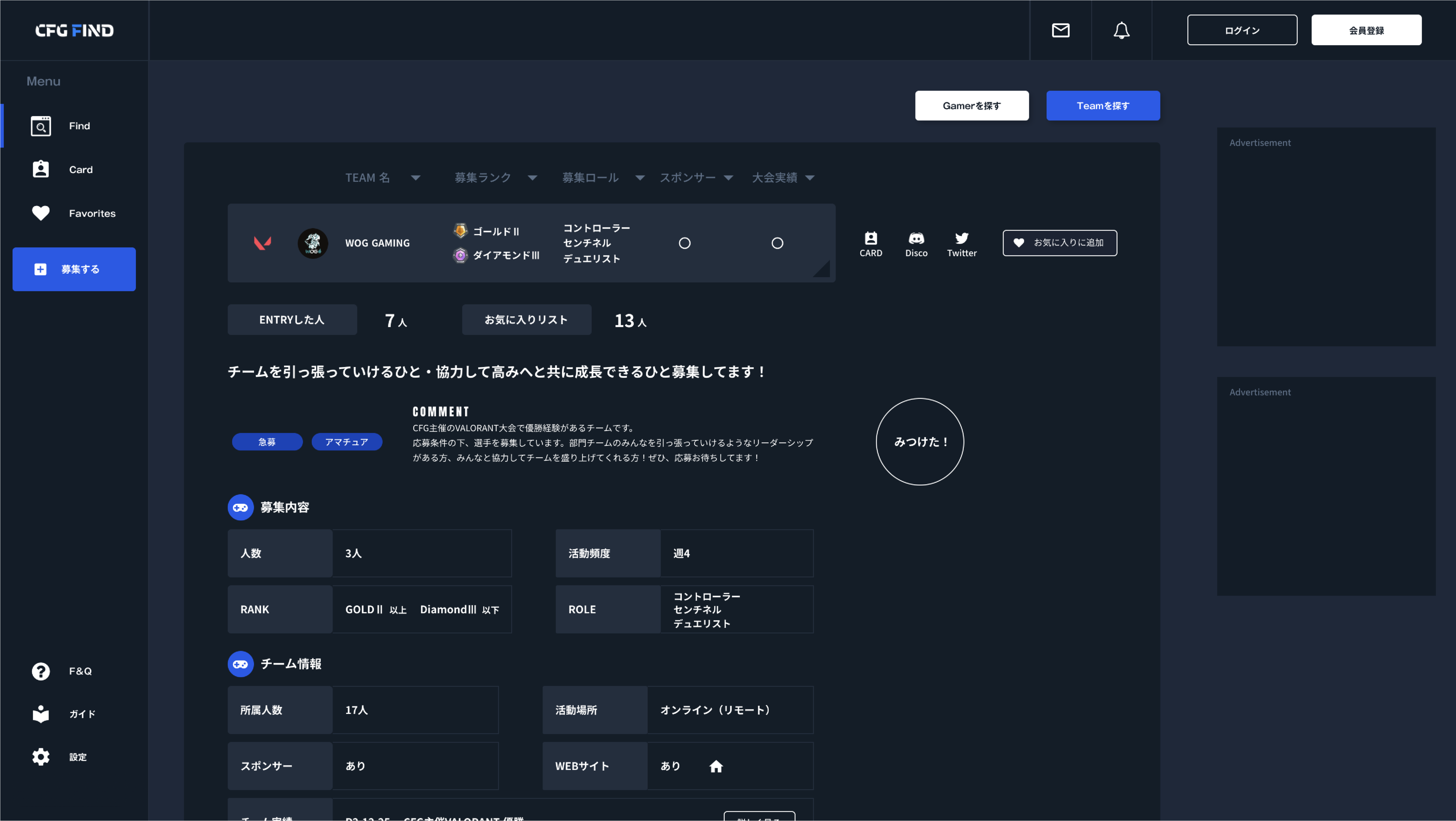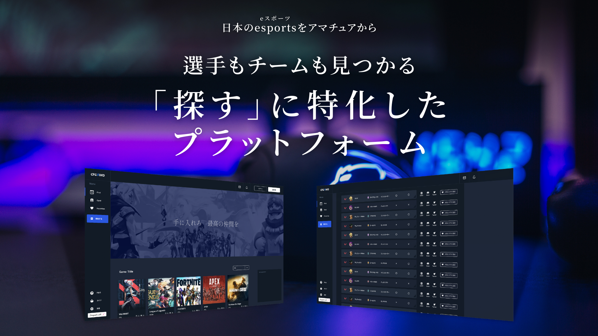 CFG FINDは、eスポーツチームや選手候補を「探す」に特化したプラットフォーム/アプリケーション「CFG FIND」の開発にかかるクラウドファンディングプロジェクトを実施