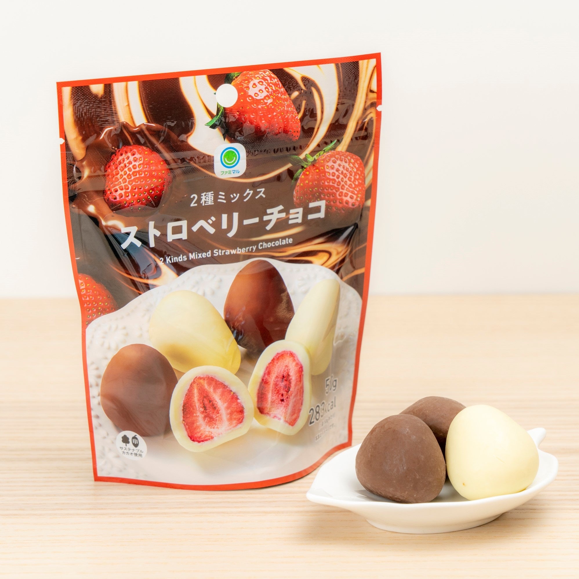 【内容】フリーズドライのいちごをミルクチョコとホワイトチョコでコーティングしました。2種類のチョコレートといちごの組み合わせが楽しめる、よくばりなセットです。
