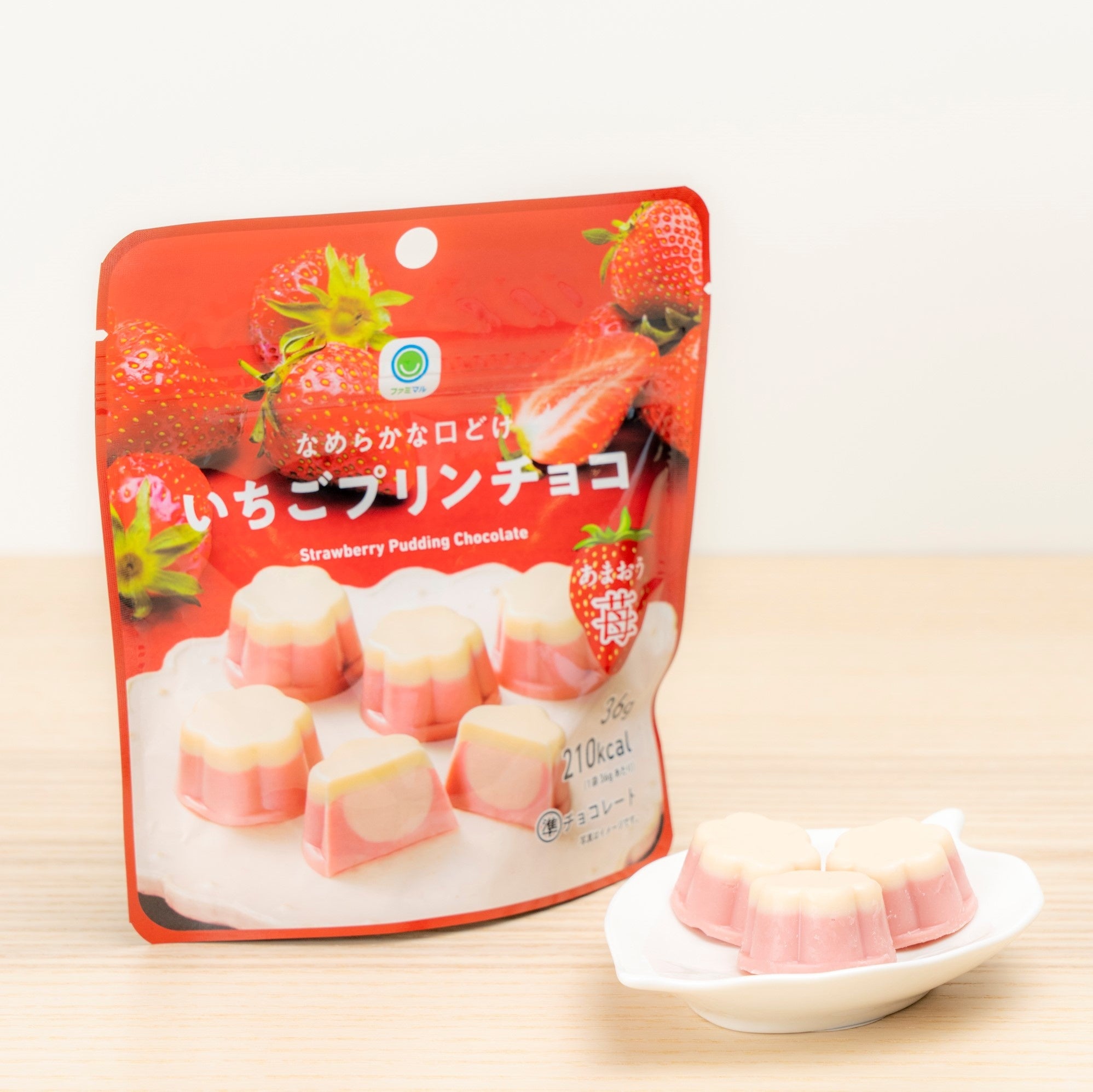 【内容】なめらかなくちどけが特徴なプリン形状のチョコレートです。あまおういちごのパウダーをふんだんに使用し、いちごの甘みと酸味が感じられるチョコレートに仕上げました。