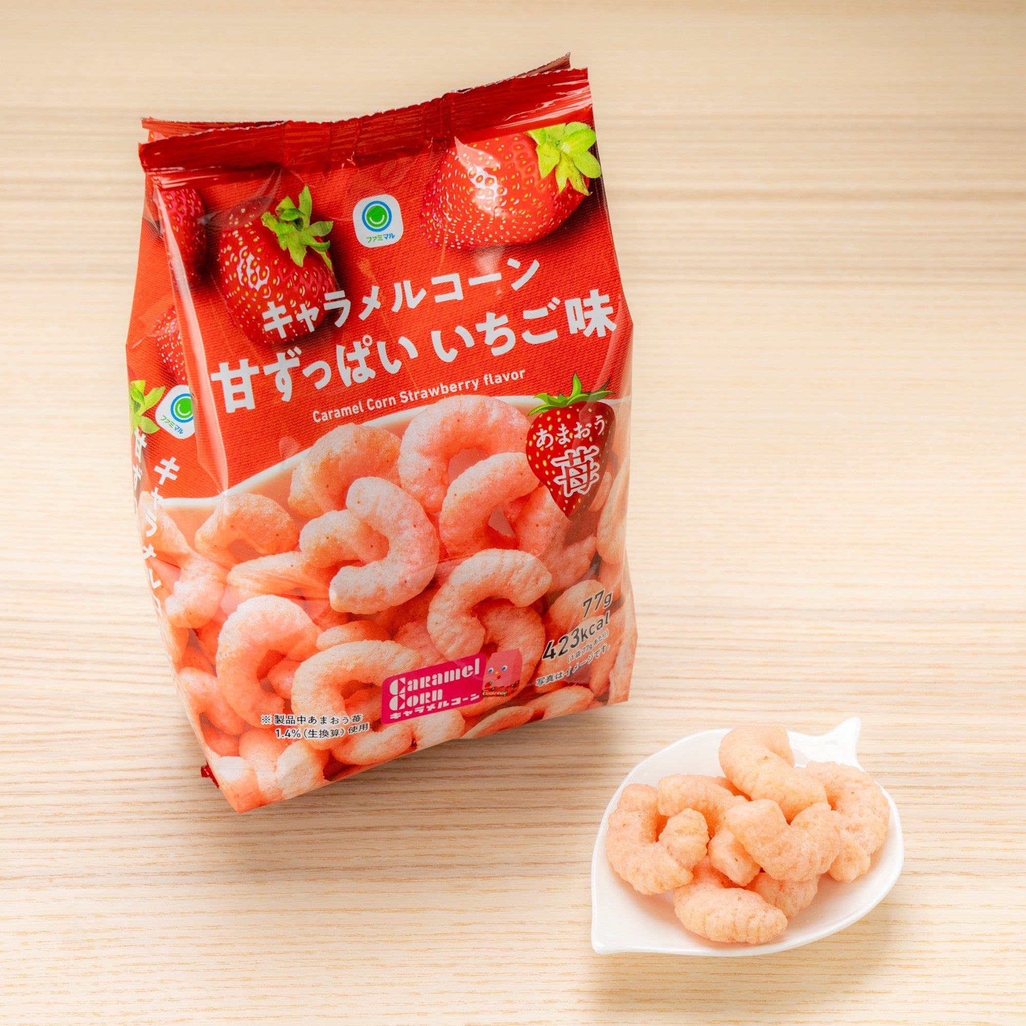 【内容】人気ブランド「キャラメルコーン」の甘ずっぱいいちご味です。蜜と味にあまおういちごをダブルで使用し、サックリ甘ずっぱい美味しさに仕上げました。