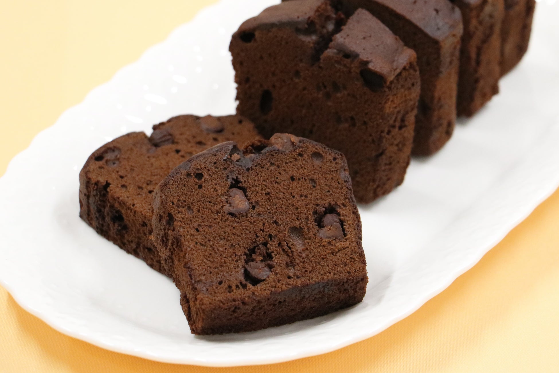 チョコレート生地とチョコチップのダブルのおいしさで、チョコ好きの人が満足できるパウンドケーキです。