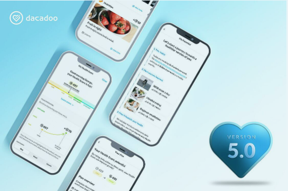 エンドユーザーの観点から、dacadooは真に画期的なユーザー体験と強化されたインターフェースを発表し、これを通じてユーザーは自信の「ヘルススコアの潜在性」を完全に理解することができるようになりました。