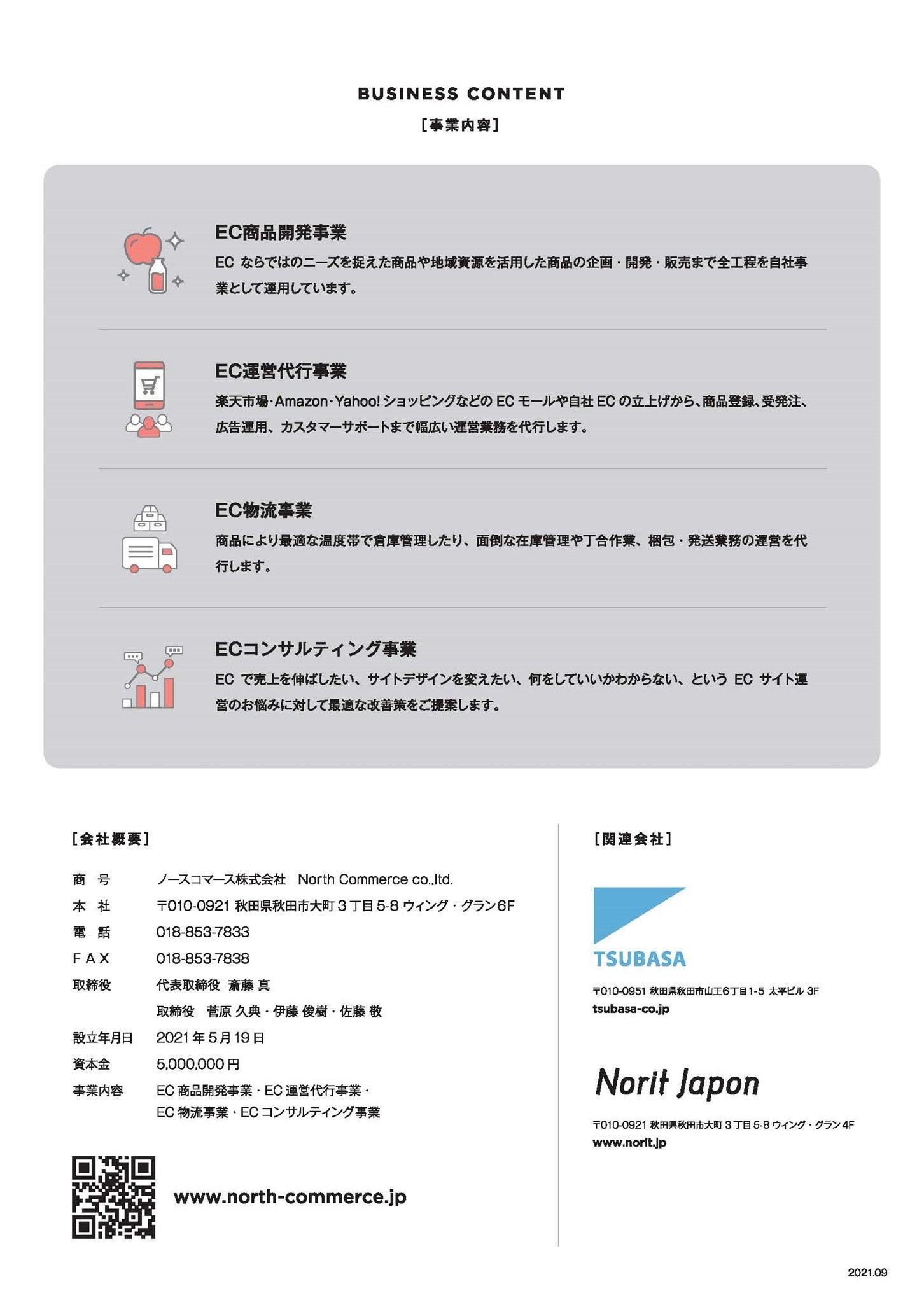 ・問い合わせ先:ノースコマース株式会社 ☏018-853-7833