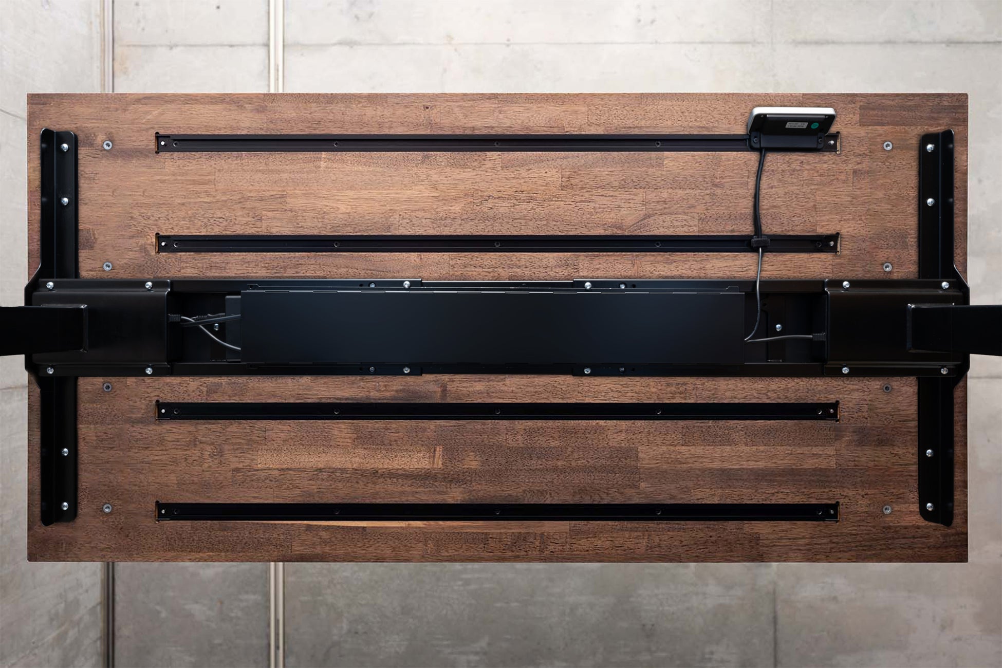 PREDUCTS DESKは「Desk Modular System」を備えたモジュール式拡張デスクです。 天板裏に埋め込んだ4本のレールにより、様々なモジュールが装着可能なDESK MODULAR SYSTEM。電源タップを固定しケーブルを這わせたり、トレイを装着してPCや書類が格納できます。(特許取得済)