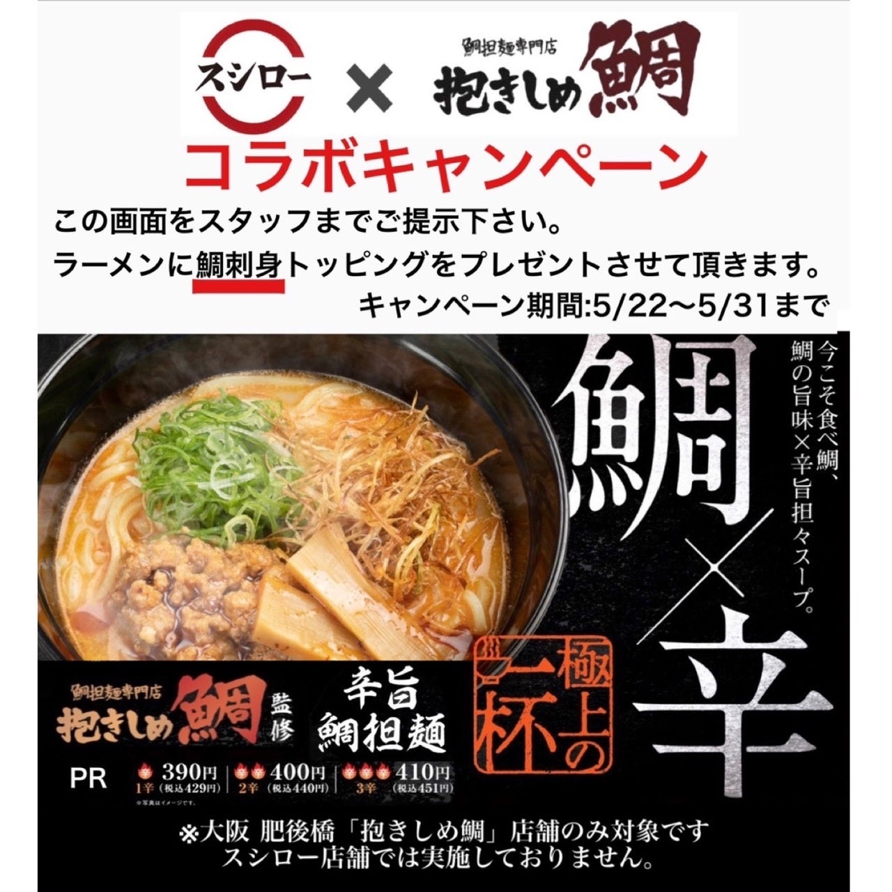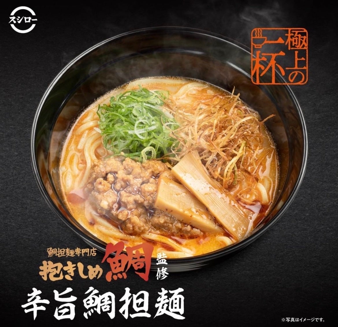 【期間限定】大阪の行列店のラーメンが全国のスシローで味わえる!愛媛県宇和島産の真鯛をふんだんに使った新感覚のフレンチラーメン「辛旨 鯛担麺」をご賞味あれ!