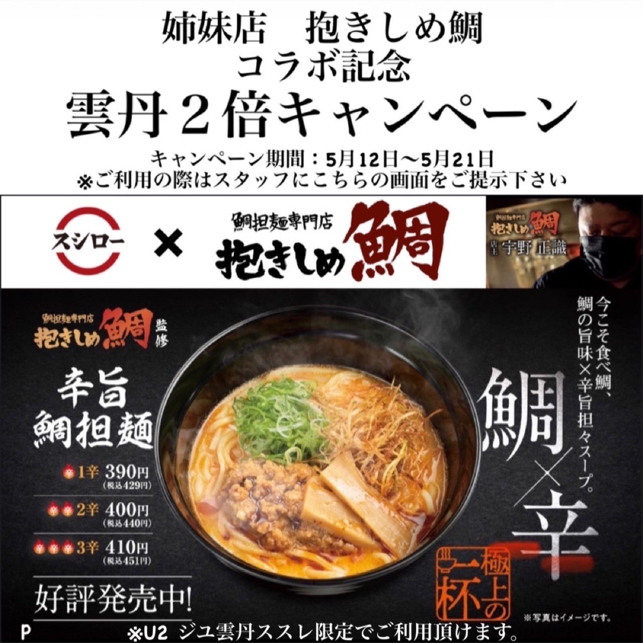 【全国のスシローで販売!「辛旨 鯛担麺」詳細】