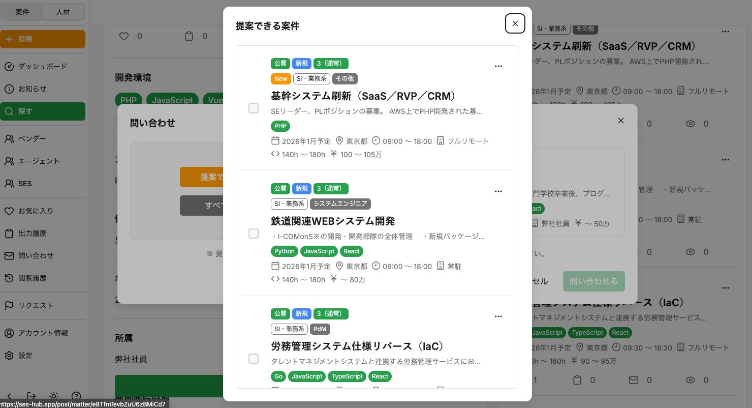 サービス: SES_HUB / FreelanceDirect/HR_Booster(開発中)