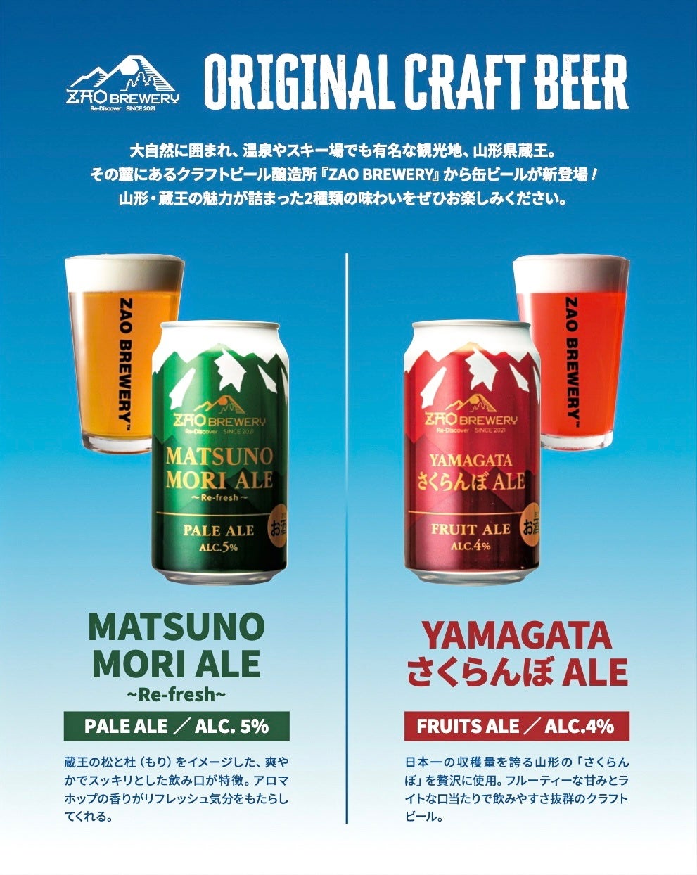 今回発売する「YAMAGATAさくらんぼALE」と「MATSUNOMORI ALE ~Re-fresh~」の缶商品は、より多くの皆様にZAO BREWERYのビールを楽しんでいただきたいという想いから誕生いたしました。