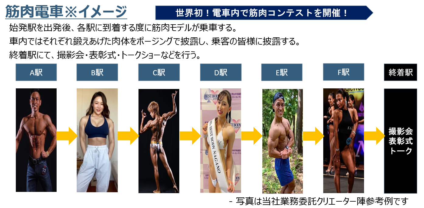 鉄道会社の貸し切りプランを活用して、「筋肉電車を走らせる」ことです!