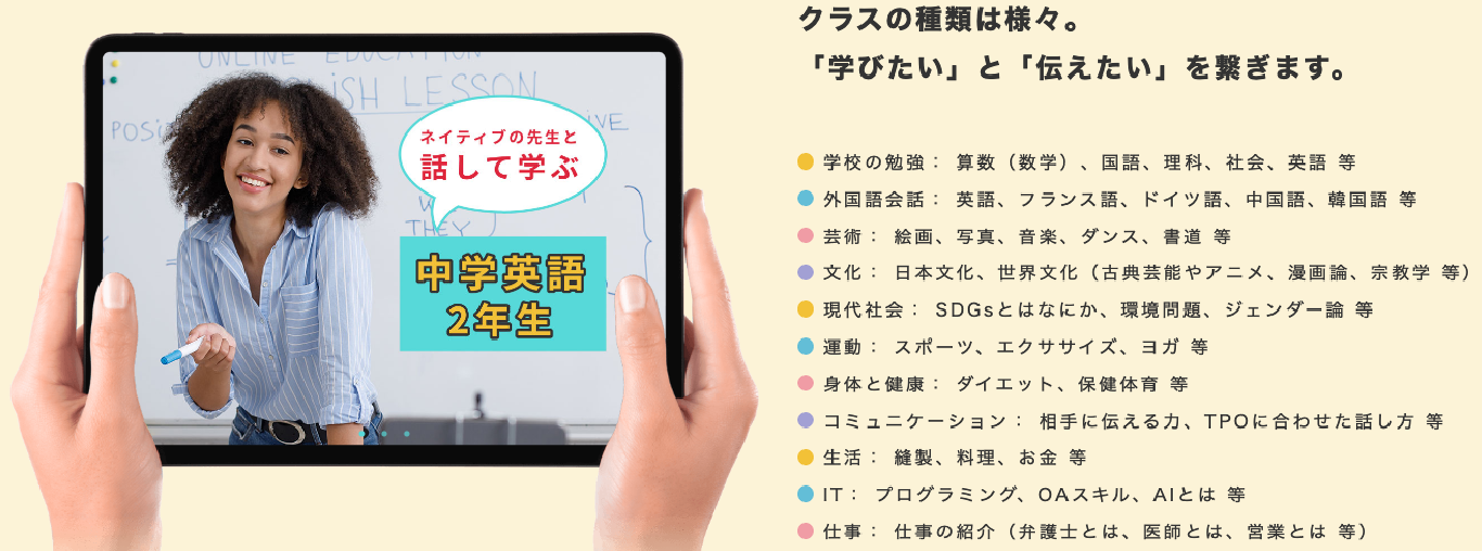 また、コンセプトの一つに「誰でも先生になることができる」ということを掲げており、教職者だけでなく、様々なバックグラウンドを持つ人々がUrSTUDXの中で先生となり、様々なニーズに応えることがプラットフォームです。