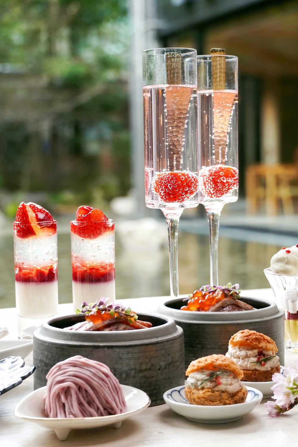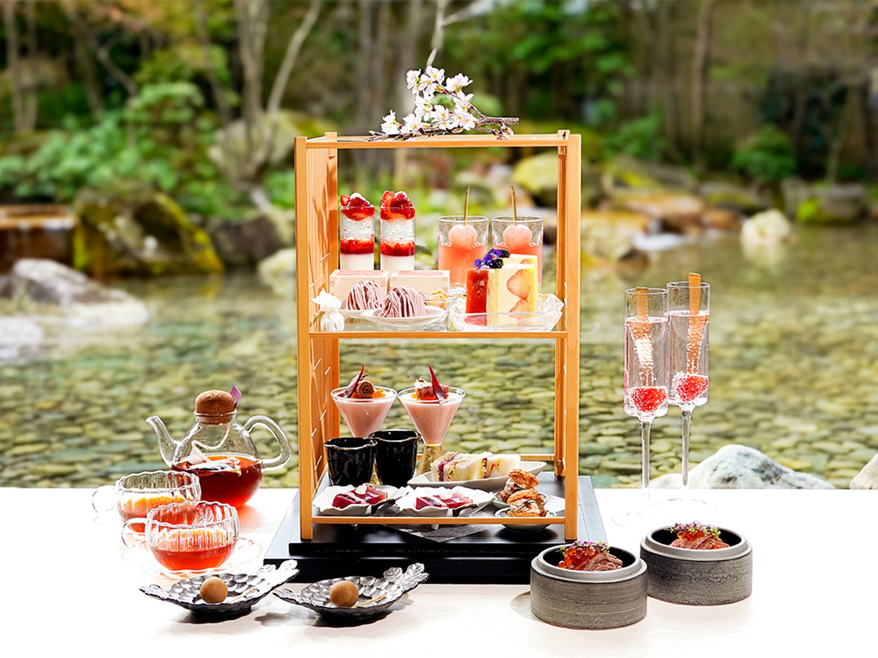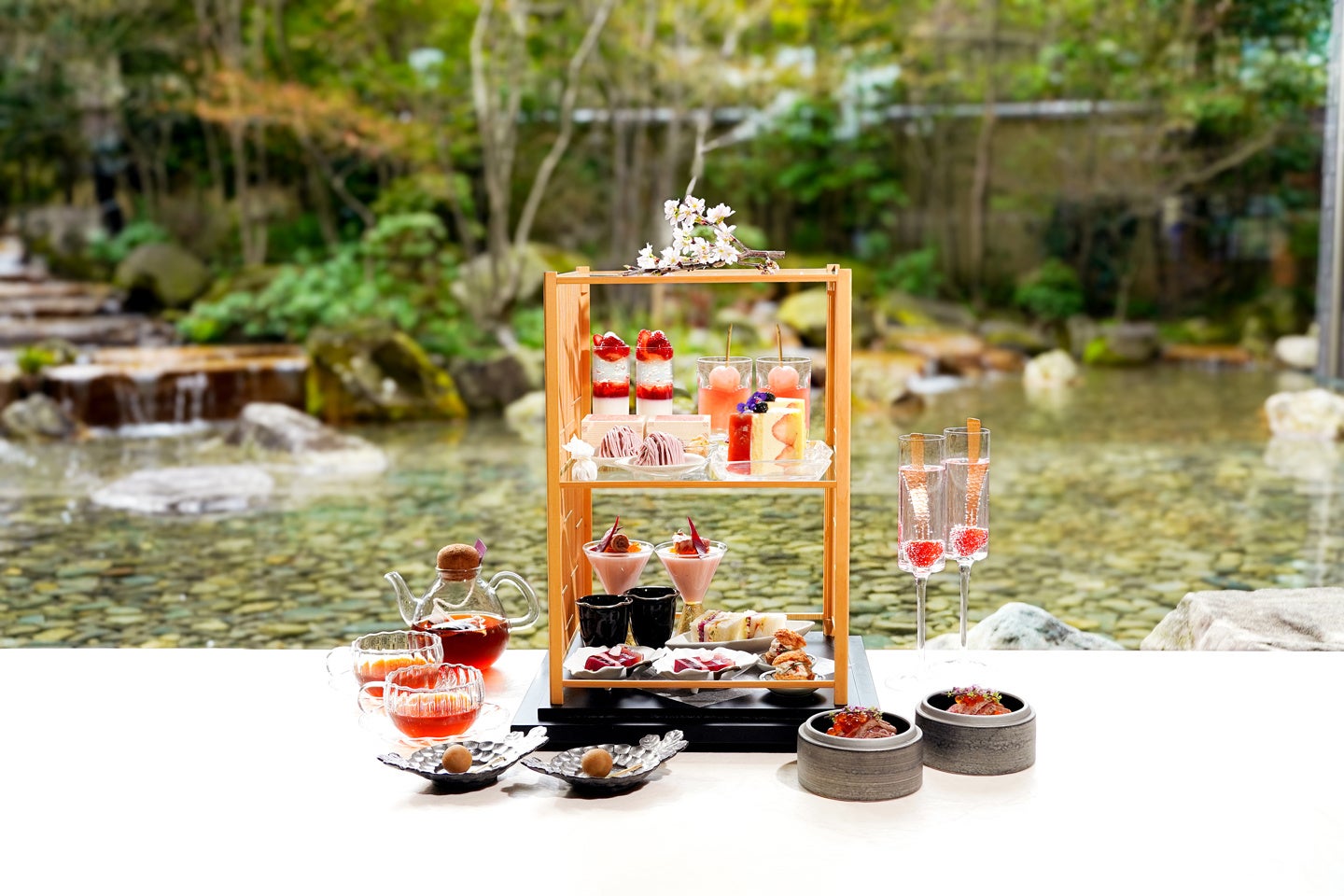 「この街で極上の癒しを」日常の喧騒から離れて、滝の音が響く日本庭園に包まれた「茶寮 楽書院」。この春、さらに特別なひとときを彩る「苺と桜花のアフタヌーンティー」をご用意いたしました。