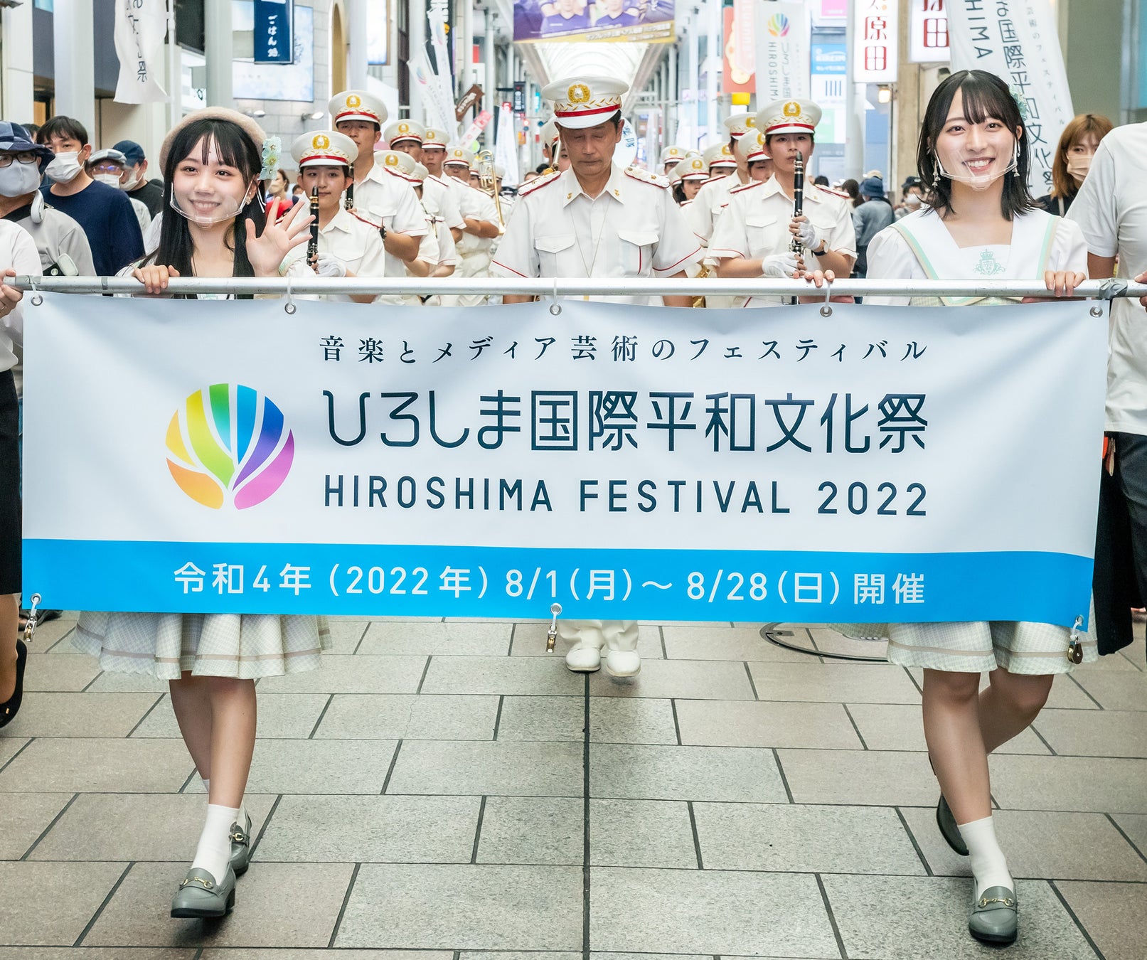 第1回ひろしま国際平和文化祭(ひろフェス)の「開催30日前PRイベント」を7月2日(土)、広島市中心部で開催しました。アンバサダーのSTU48 のメンバーなどによる本通のパレードをスタートに、新たなイベントの開催をアピールしました。