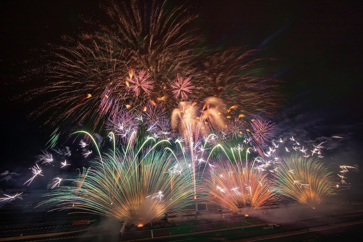 豊かな自然に囲まれたサーキットを舞台に、音と光が奏でる華やかな劇場型花火が新年の幕開けを彩ります。澄んだ冬の夜空に輝く大輪の花火に想いを馳せて、大切なひとと一緒に感動の瞬間を体感しながら、心に響く迫力の花火ショーを鑑賞いただけます。
