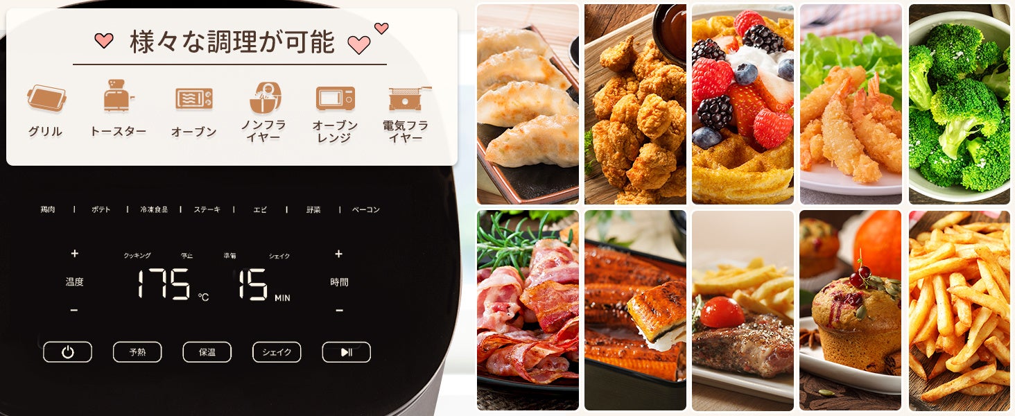 - 85%油カット: 360度加熱機能により、味を損ねず従来の揚げ物に比べて85%油カットでヘルシーに料理を楽しめます。