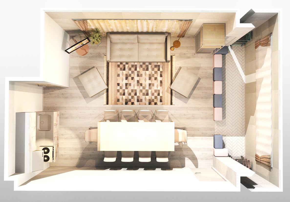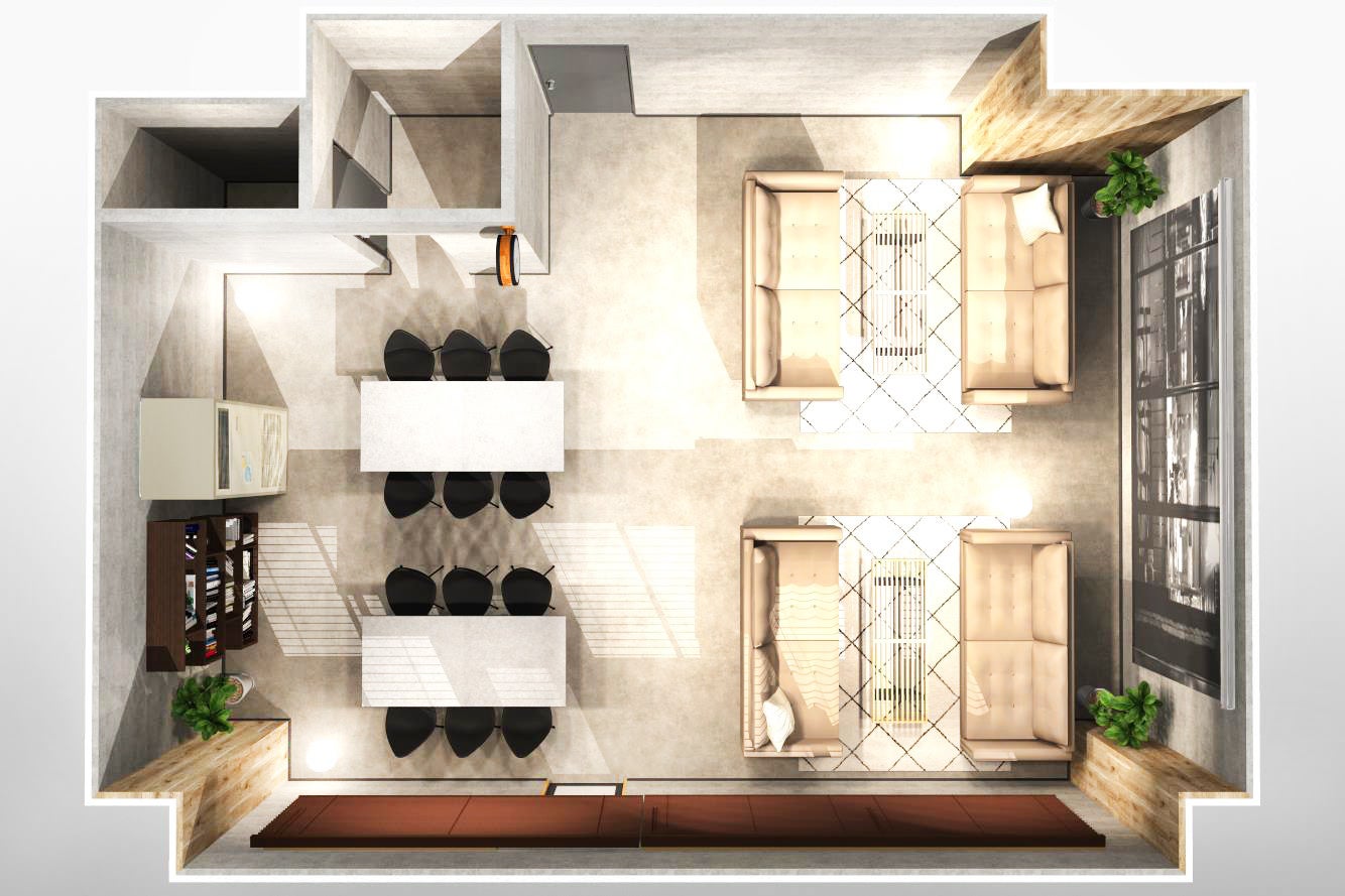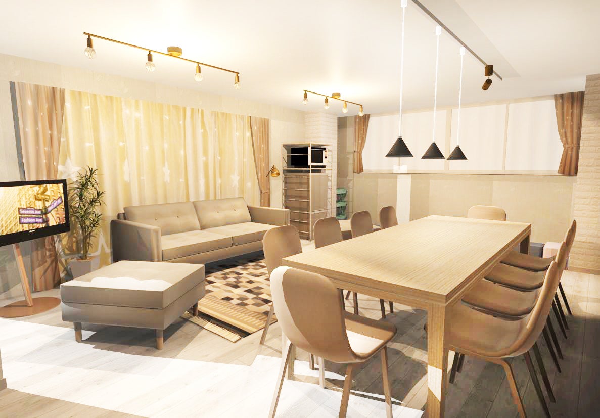 今回サービスに追加されるレンタルスペースデザインサービスでは、オーナー様の所有するスペースを3DCGを活用し内装や家具の配置イメージをプランニングしデザインいたします。