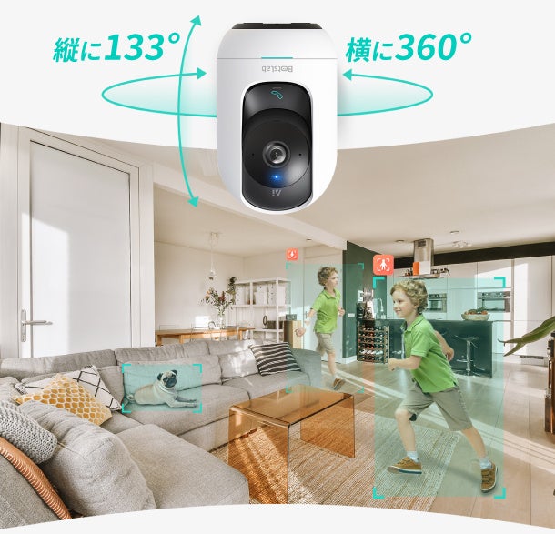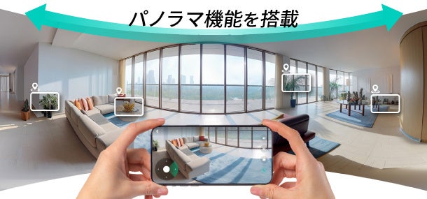 部屋の様子を一望できるパノラマ撮影が可能。それにより、カメラの死角を補い、部屋のほぼ全域を見渡すことが可能です。動き回るものでもしっかりと捉えます。