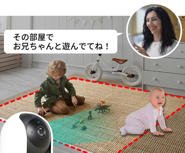 泣き声検知機能は赤ちゃんの泣き声を検知し、スマホに通知。忙しい両親の子育てを強力にサポートします。ぜひ、スマホから赤ちゃんに話しかけて、なぐさめてあげてください。