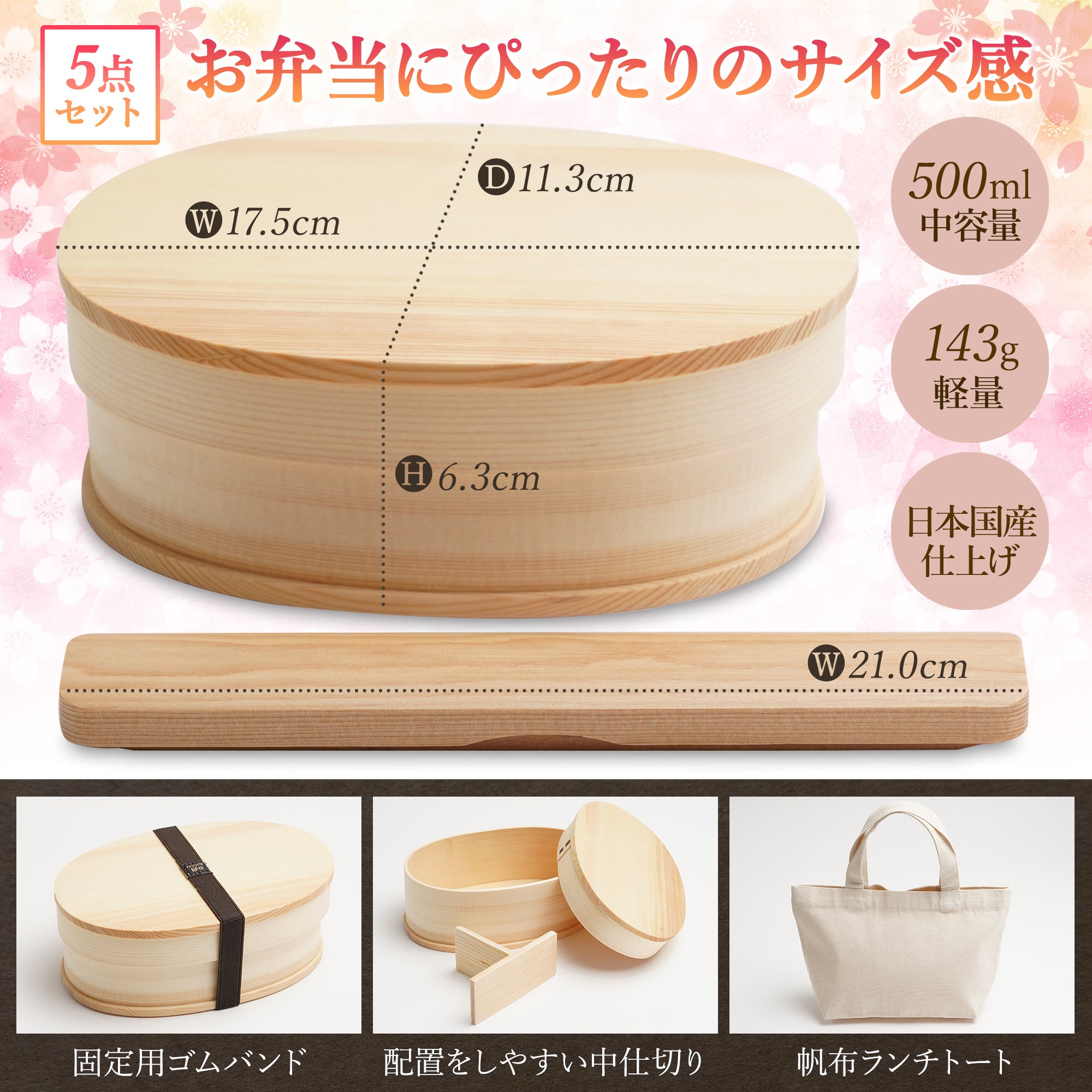 ▼SEIDO まげわっぱ弁当箱 食洗器対応 日本製 天然木使用 木製箸 帆布ランチバックセット