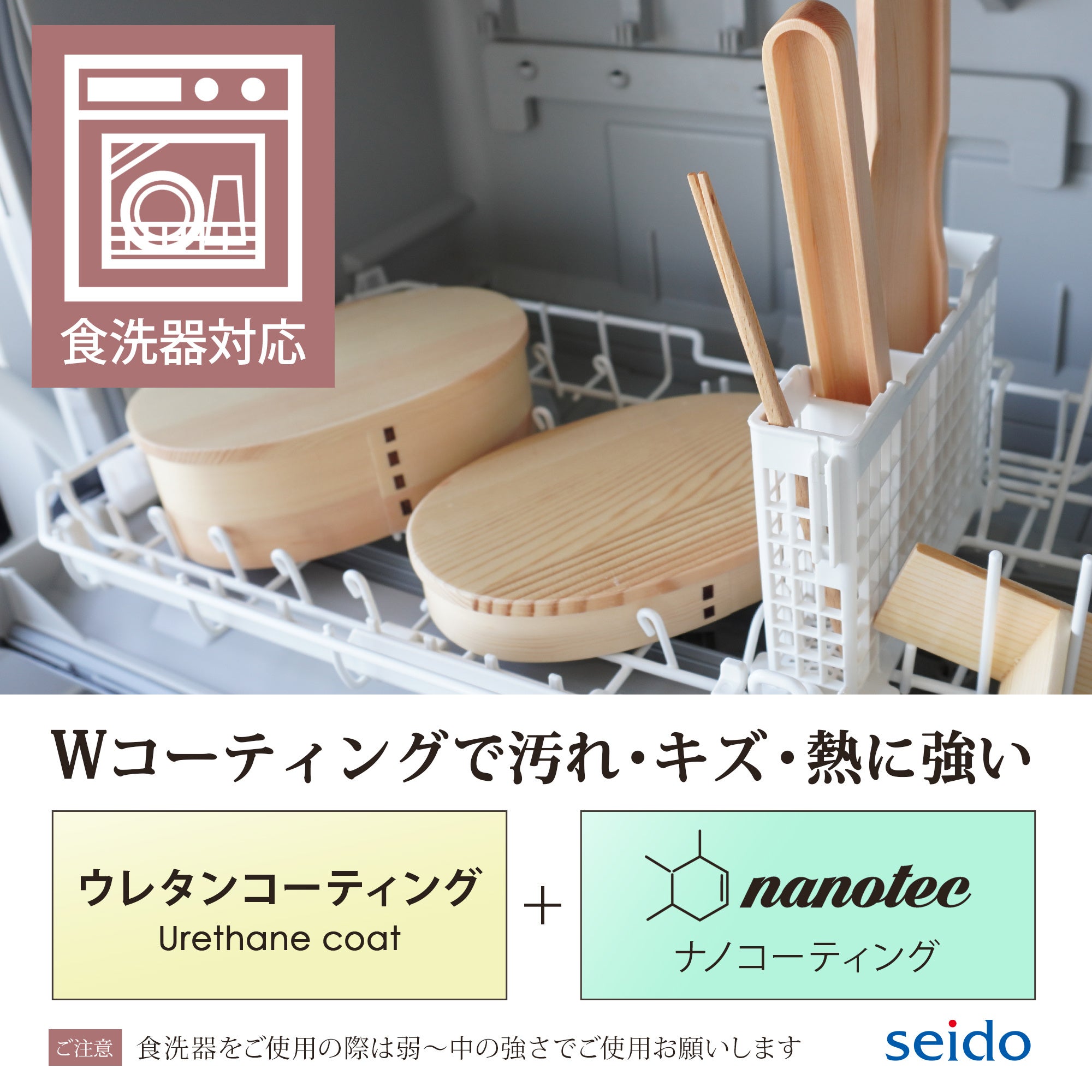 食洗器対応の日本製曲げわっぱ弁当箱を販売開始。ウレタンコーティングとナノコーティングの二層塗装で食材の色移りがしにくく、油汚れが落ちやすい、日本の職人手作りのこだわりの逸品。