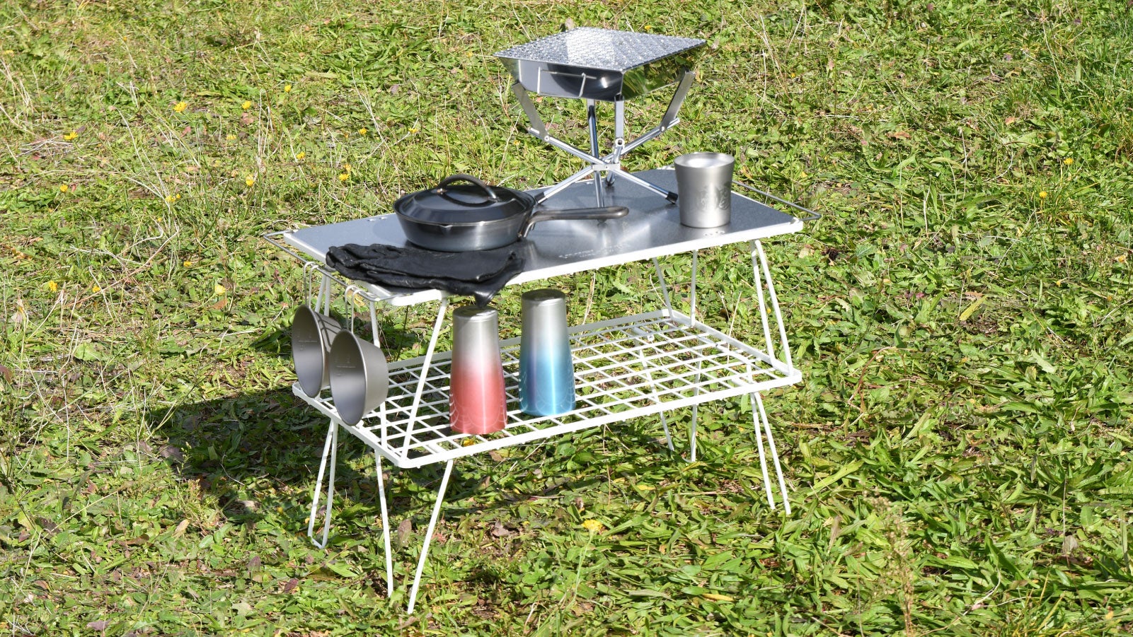フィールドラックは、株式会社新越ワークス(ユニフレーム)が2017年に発売しました。荷物を雨水や泥汚れから守り、軽くてコンパクトかつ、頑丈な脚高のある棚として人気を博し、重ねたり並べたりと様々な組み合わせで使用することが出来ます。また、天板などの関連商品と組み合わることでテーブルとしても使用でき、幅広い用途でキャンプサイトを快適にすることが出来る商品です。ホームショッピングでも累計約5,800台(2023年11月時点)を販売してきました。