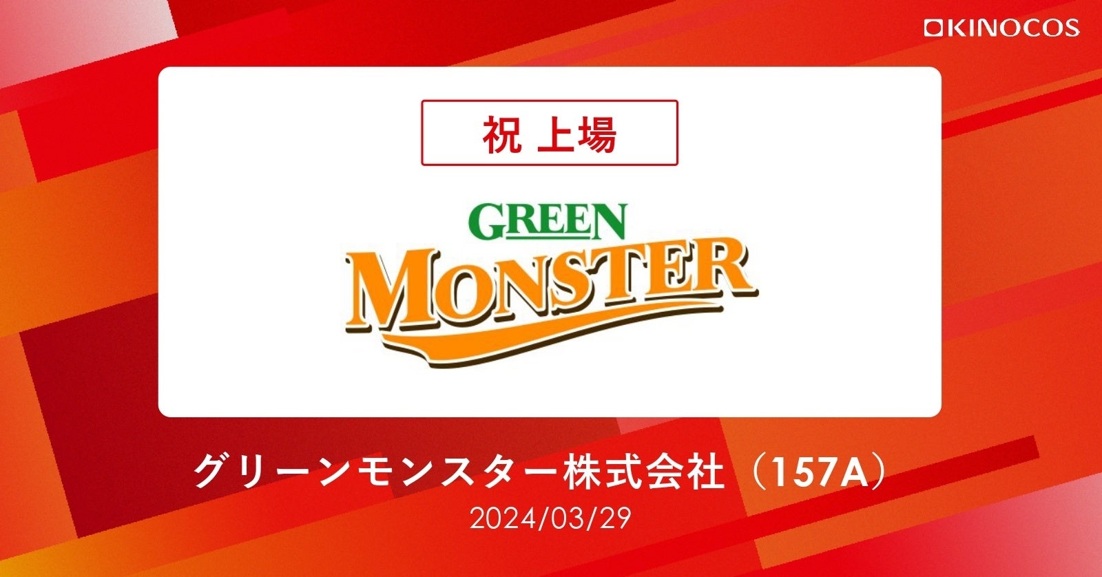 KINOCOSの支援先、グリーンモンスター株式会社が東証グロース市場へ上場