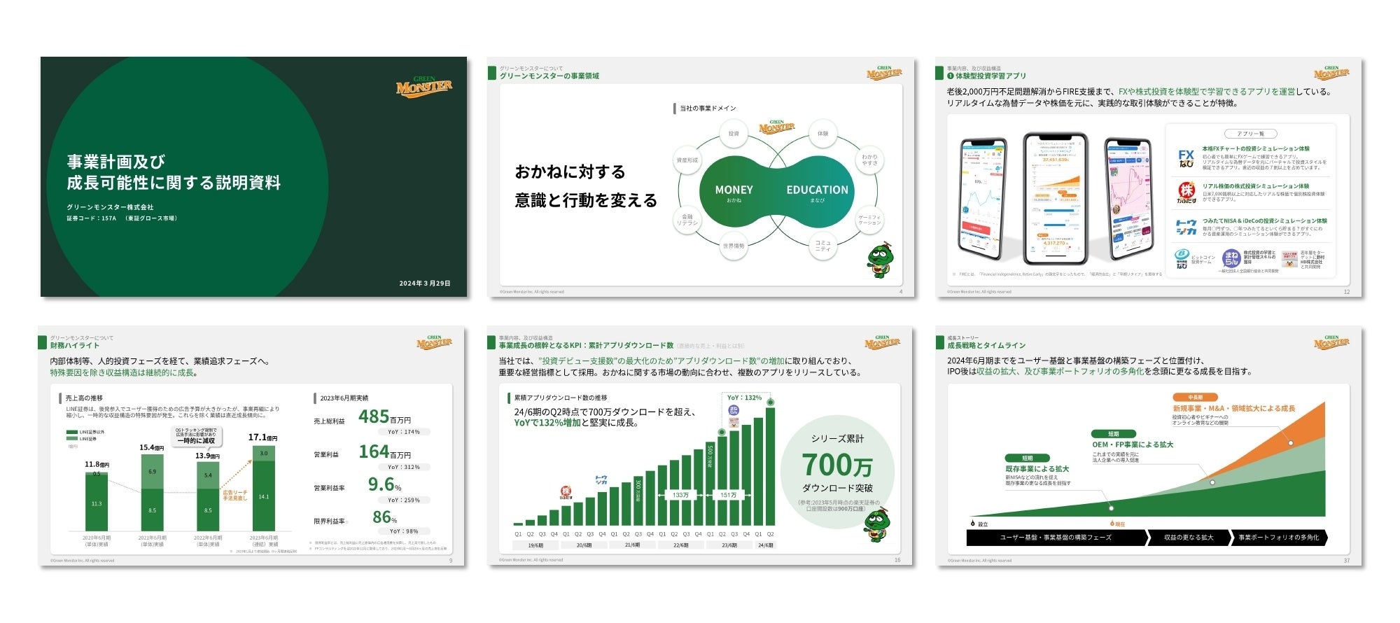 KINCOOSは、グリーンモンスターに対して、ロードショーにおける投資家とのコミュニケーションを円滑にする為、ロードショーのマテリアルの制作支援を実施いたしました。