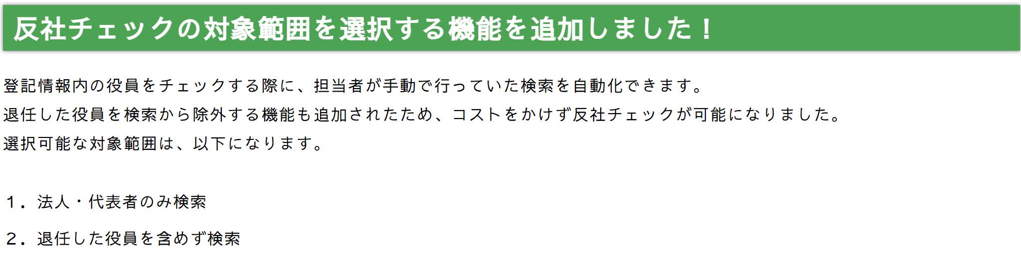 反社チェック時における登記情報の自動解析・照会ツール提供は国内初