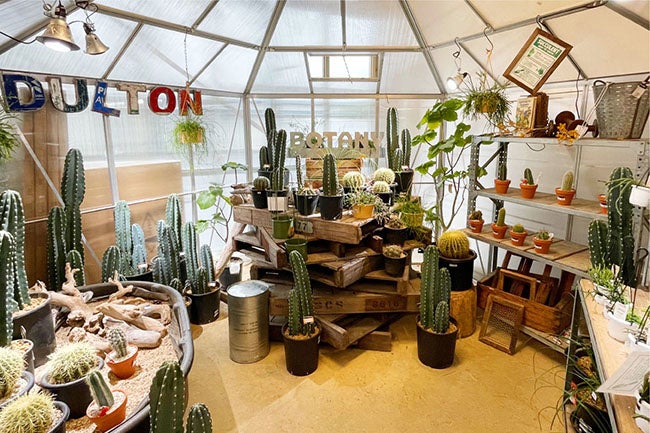 2階では植物園の様な雰囲気の中、サボテン・多肉植物・熱帯植物など幅広い種類の植物を販売。
