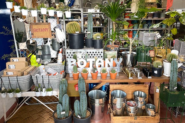 2フロアあり、1階では雑貨・家具・植物を組み合わせた空間を提案。