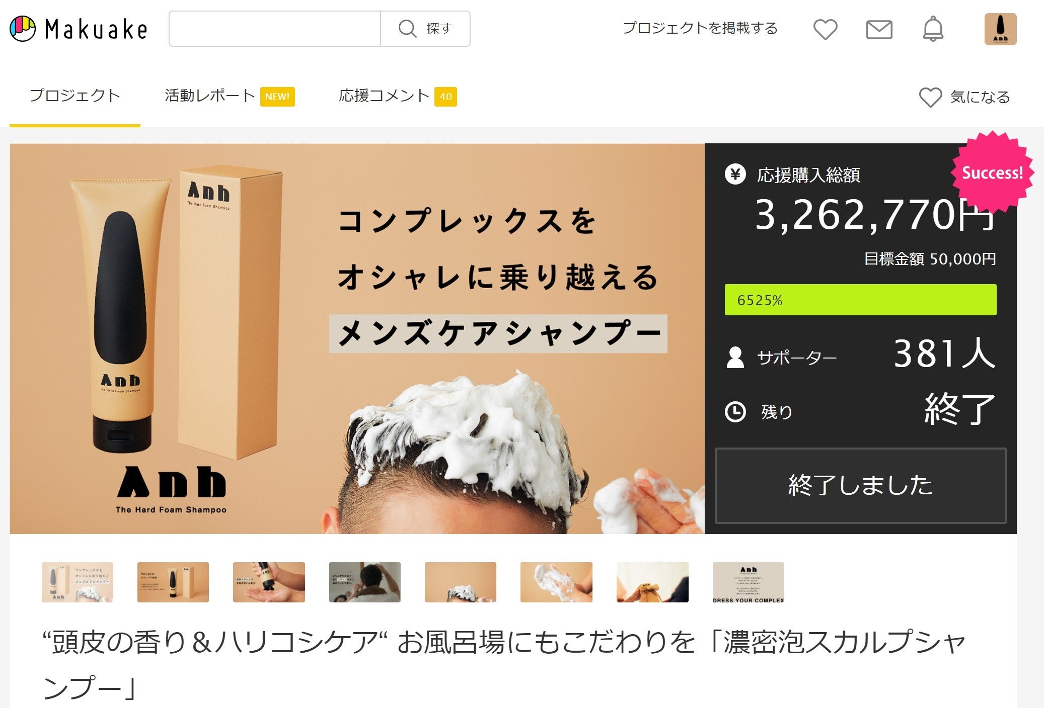 - AnhハードフォームシャンプーMakuake最終結果