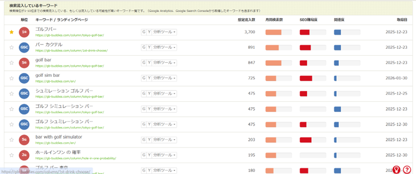 各キーワードに対応する現行の順位など視覚的に分かりやすくしました。