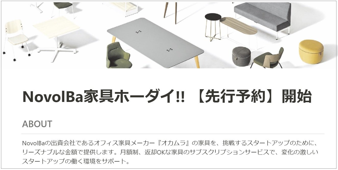 スタートアップ向け月額制家具サービス『NovolBa家具ホーダイ!!』の先行予約を開始