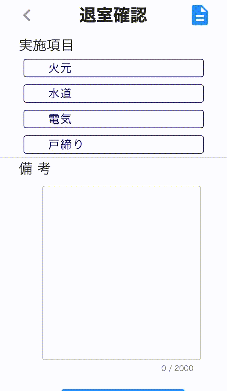 バイタル(体温や血圧など)入力以外では、時間のかかるタップ入力やフリック入力無しで、記録業務を完了します。文章で記入が必要な連絡ノートも、画面をタップするだけで書ける仕組みを作りました。
