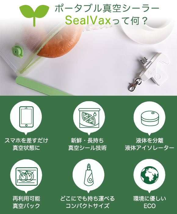 SealVaxは真空状態にできるだけでなく、耐久性があり100%気密性のある抗菌バックです。