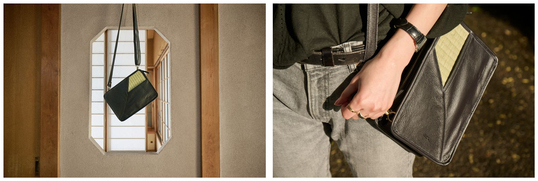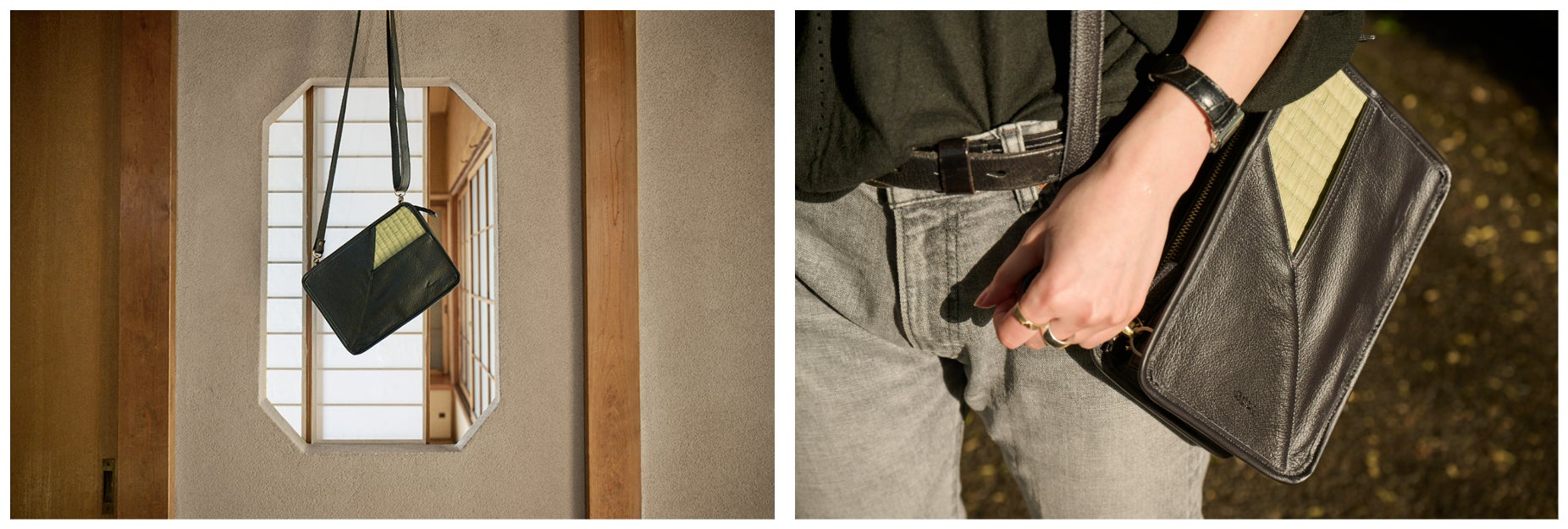 伝統とモダンが交差する「畳×レザー」の”国産サステナブルアイテム” 「畳ウォレット」、「畳ポーチ」、「畳ショルダーバッグ」を新発売!