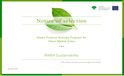 シンガポール発サステナビリティ評価プラットフォーム「RIMM」の日本における事業展開を目的に設立されたRIMMジャパンは東京都「グリーンファイナンス外国企業進出支援事業」に採択されました。グリーンファイナンス領域における東京都の施策として、最大4年間に渡って日本進出のサポートと総額1億円規模の支援が提供されます。RIMMジャパンは金融機関や事業会社と連携し、中小企業向けにSDGs/ESGのプラットフォーム事業の展開を進めます。
