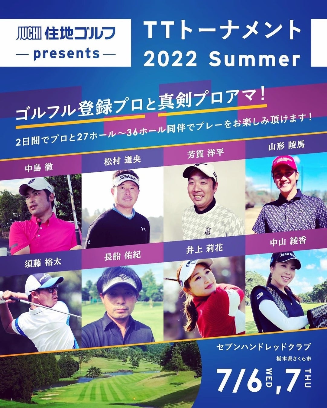 株式会社住地ゴルフ(本社:東京都渋谷区、代表取締役社長:小林忠広、以下住地ゴルフ)は、同社のグループであるゴルフ場「セブンハンドレッドクラブ」(栃木県さくら市)にて2022年7月5日(火)〜7日(木)に開催される「TT トーナメント 2022 Summer」に特別協賛いたします。本大会は、プロゴルファー・JGDO(日本ゴルフツアー機構)ツアープレイヤーの中島徹氏が主催するマッチプレートーナメントで、今回が初めての開催となります。