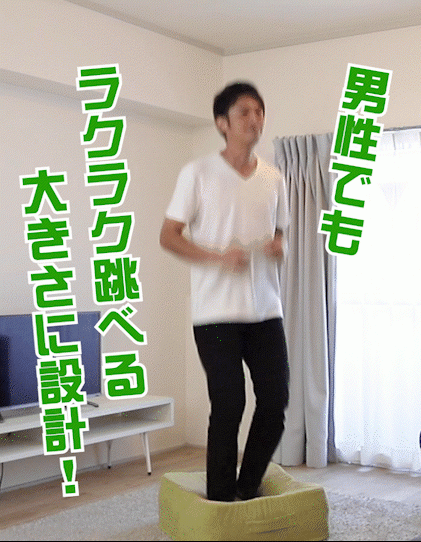 小さいと跳び難い!ISSENO!はしっかり跳べるのに部屋の邪魔にならない大きさに設計にしました。